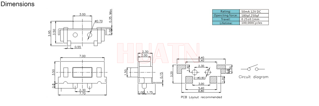 轻触开关 90° SMT 3.5x7.0mm 卧式 硅胶按柄